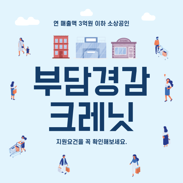 소상공인의 고정비용 부담을 완화하기 위해 소상공인 부담경감 크레딧으로 1인당 50만 원을 지원해주고 있습니다. 지원사업의 지원물량이 소진이 도래함에 따라 접수가 곧 마감되니 지금 바로 신청하세요~